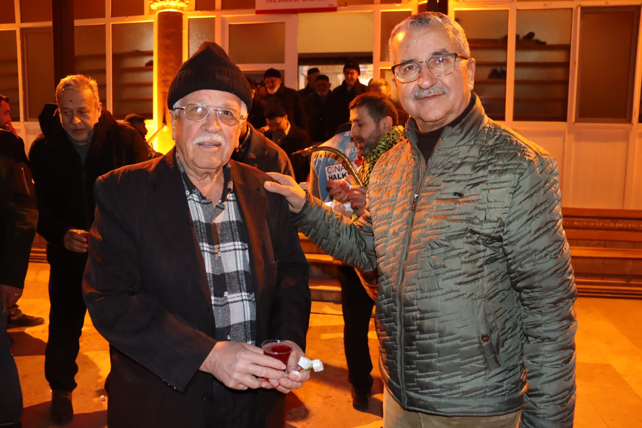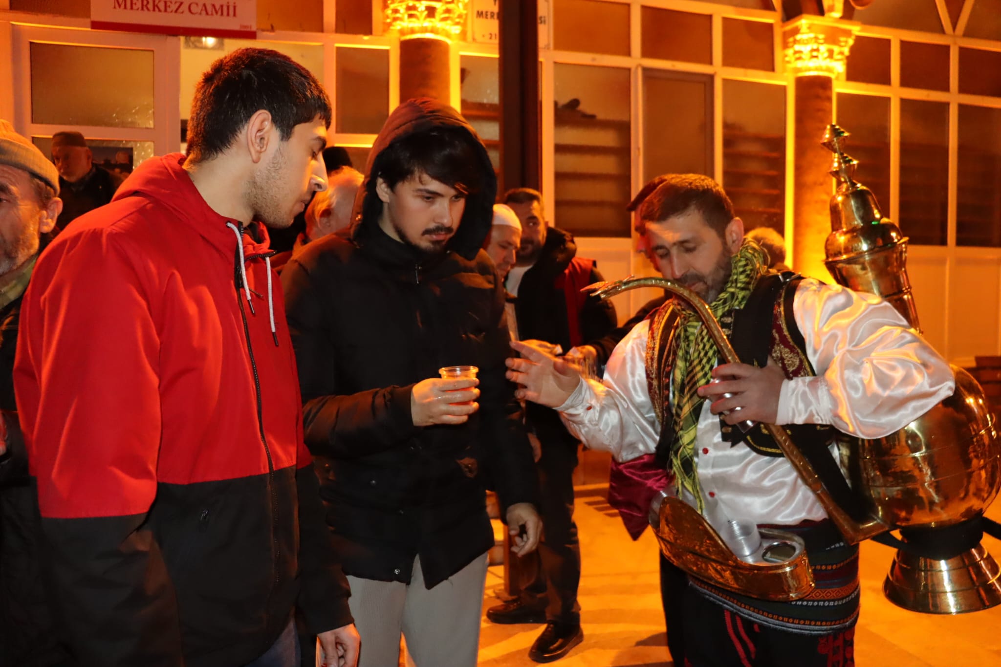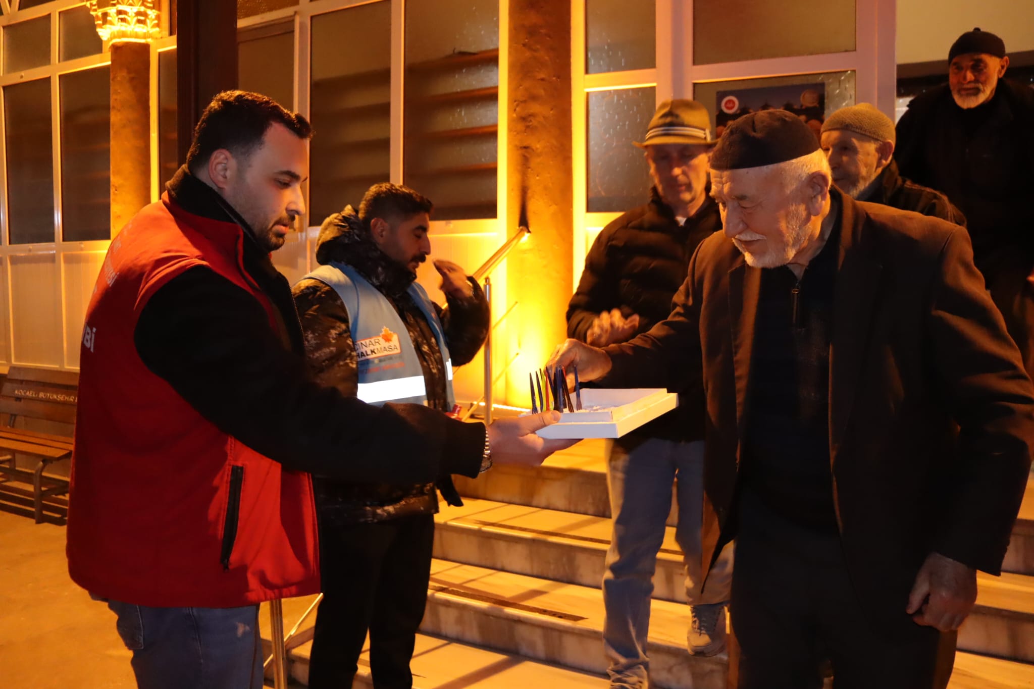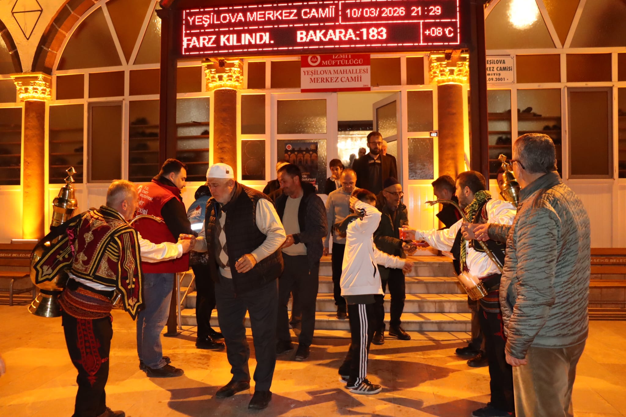 İzmit Belediyesi, Yeşilova Merkez Camii’nde teravih namazı çıkışında cemaate lokum ve şerbet ikramında bulundu