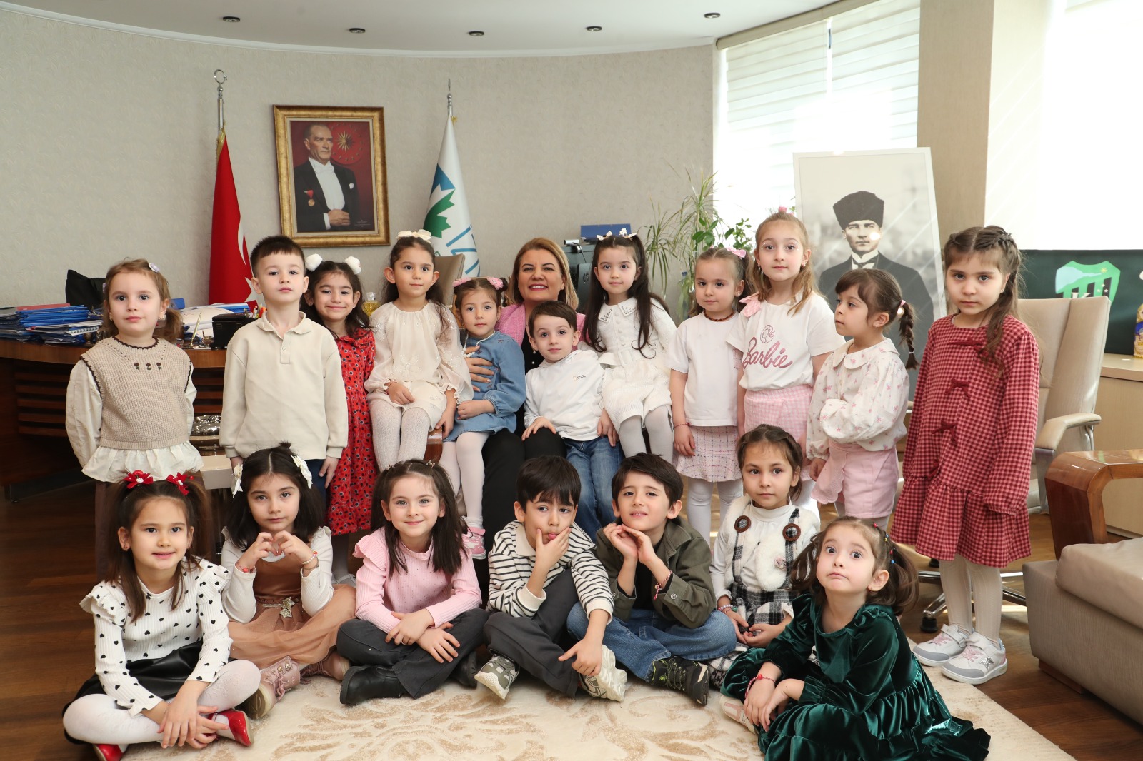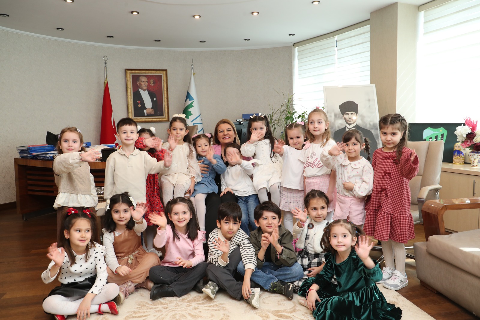 İzmit Belediyesi Çınar Çocuk Evleri’nin minik öğrencileri, İzmit Belediye Başkanı Fatma Kaplan Hürriyet’i ziyaret ederek Ramazan Bayramı öncesinde anlamlı ve sıcacık bir buluşmaya imza attı. Renkli görüntülere sahne olan ziyarette çocukların neşesi ve heyecanı, belediye binasına adeta bayram havası getirdi.